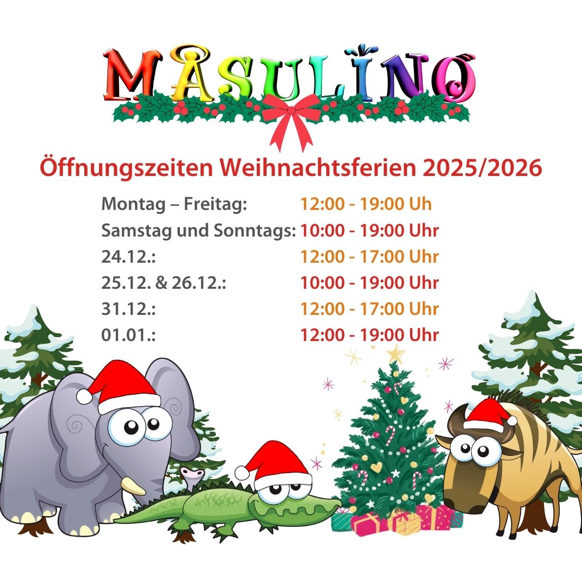 Wochenenden & Feiertage: 10:00 – 19:00 Uhr